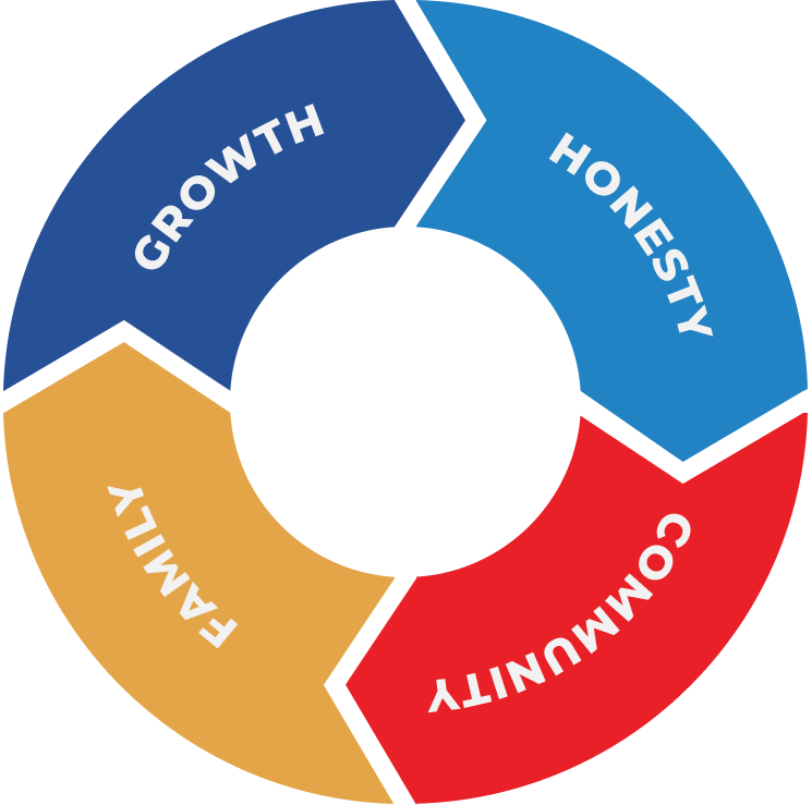 Since 2018, we’ve built our reputation on four core values: Growth & Results, Honesty & Integrity, Community & Philanthropy, and Family.